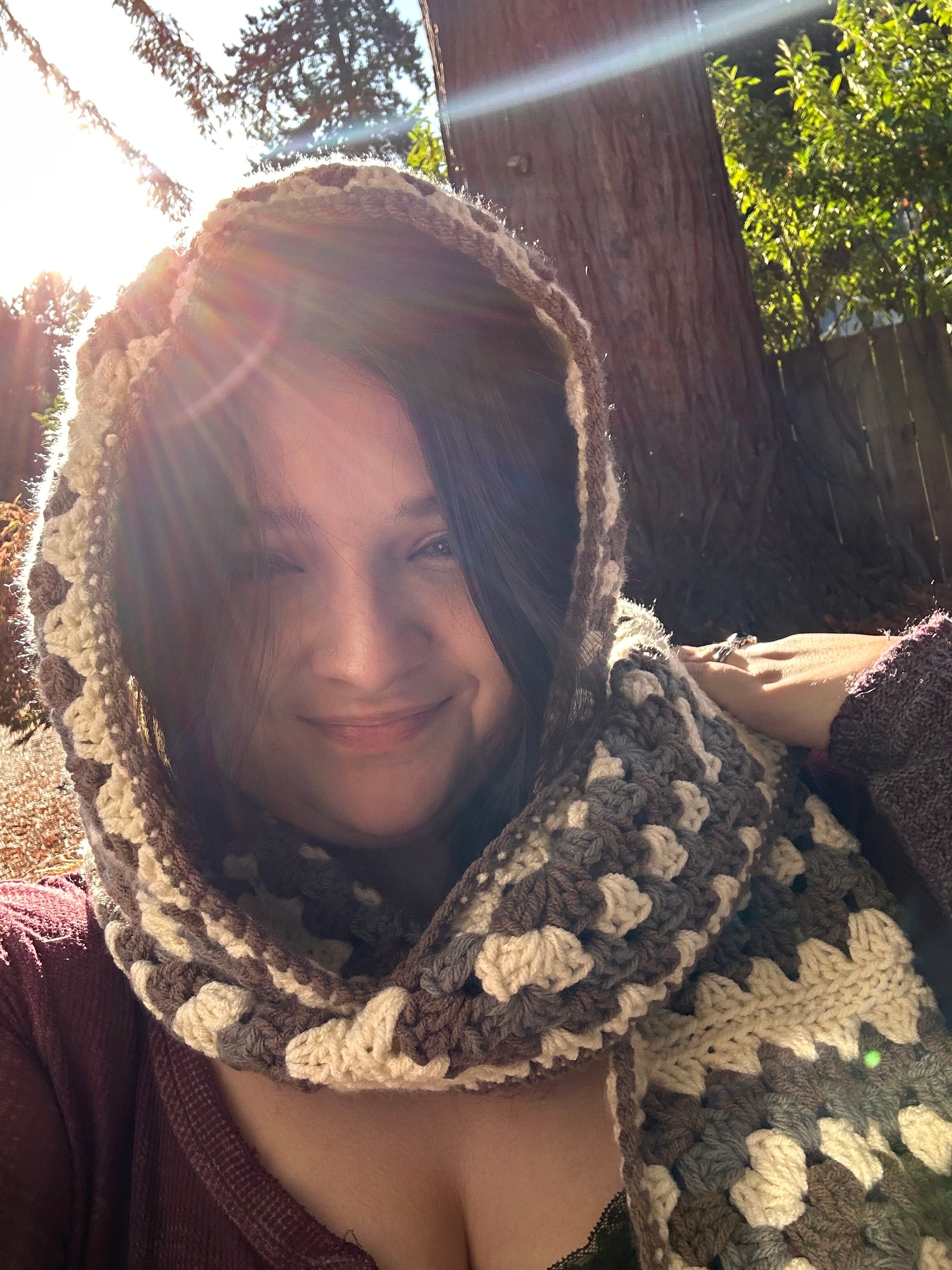 This hooded scarf is best for someone that prefers a shorter scarf. Perfect for tying or tucking into a coat.